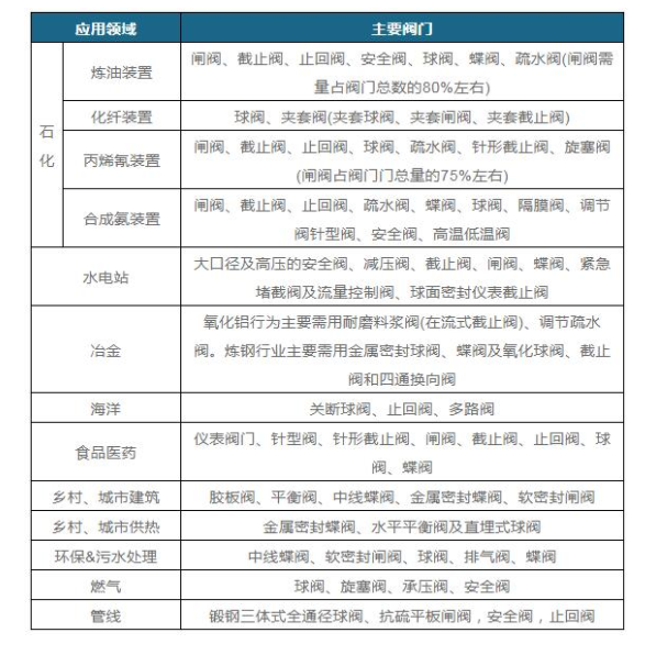 十大應(yīng)用領(lǐng)域及主要應(yīng)用閥門(mén)
