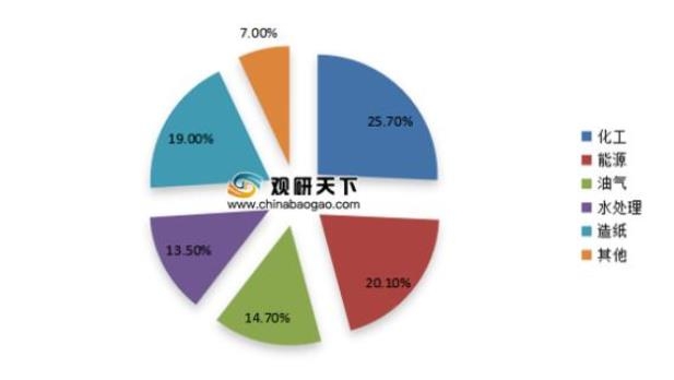 25.70%;其次是能源領(lǐng)域,需求占比20.10%;然后是造紙、油氣、水處理領(lǐng)域,占比