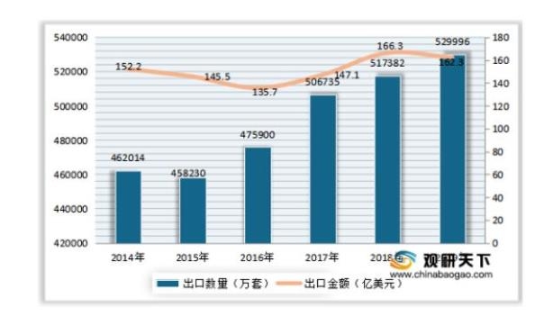 2014-2019年我國(guó)閥門(mén)出口數(shù)量及金額